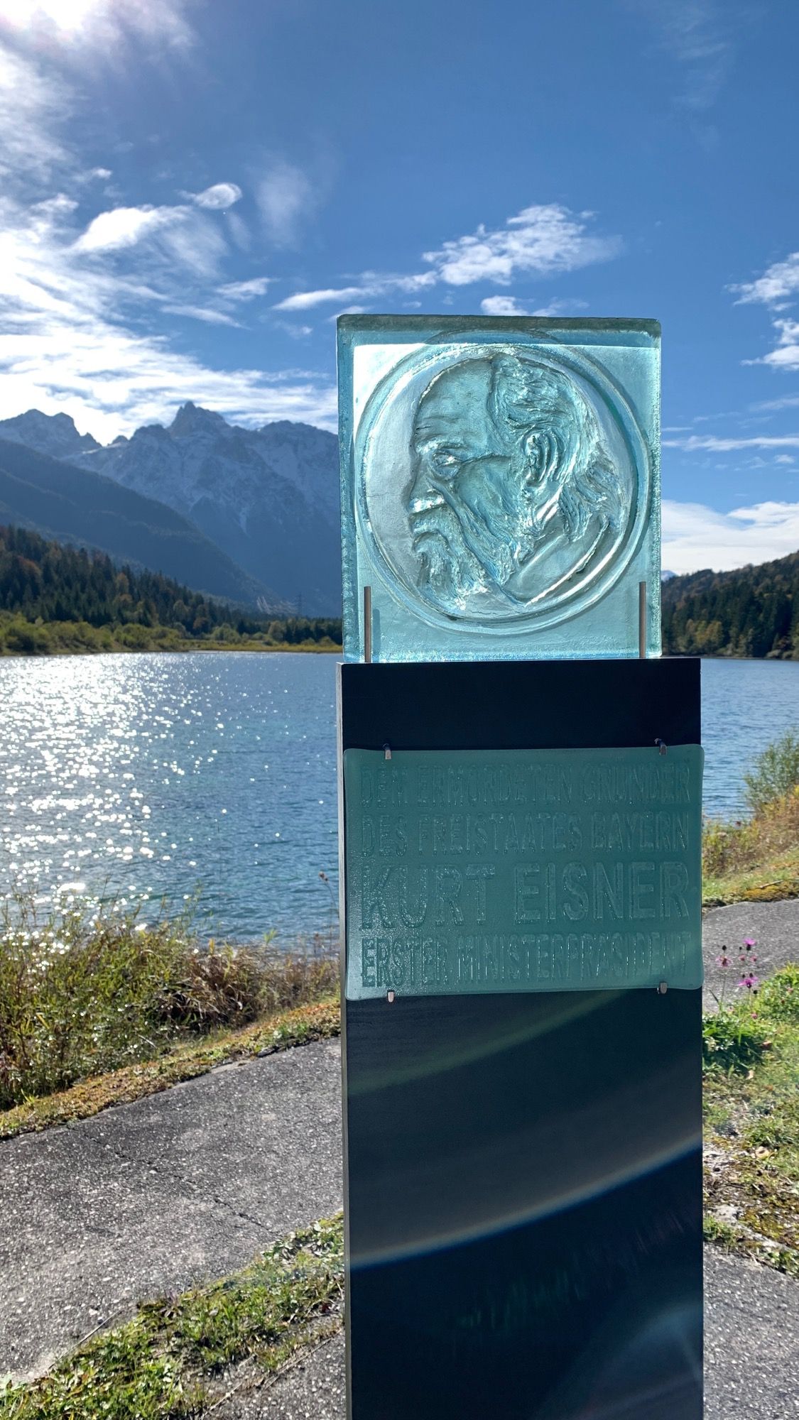 Eine Installation aus bemaltem Glas, Keramik und LED-Lichttechnik, für die Ausstellung "100 Jahre Freistaat Bayern", Rathausgalerie München